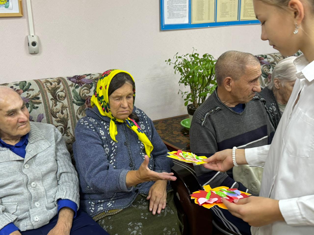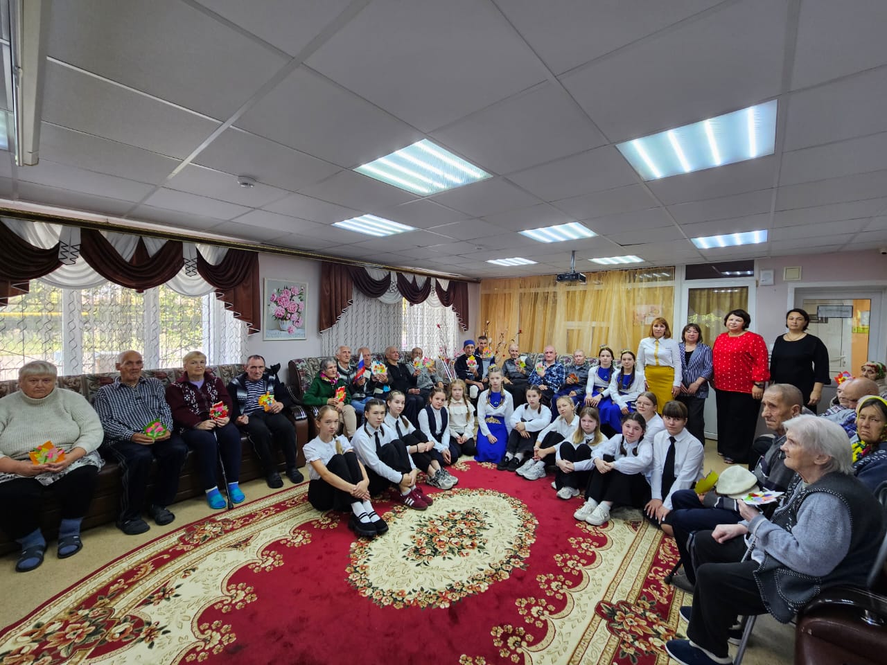 Өлкән яшьтәге инвалидлар интернат-йортына бару безнең күркәм традициябез булыр дип өметләнәбез. Балалар әби-бабайларының хәлен белергә, аларның тормышларын бераз күңеллерәк итәргә бик шат иделәр. Хушлашканда балалар үз куллары белән ясаган истәлекле открыткалар бүләк иттеләр, шулай ук уку йорты пешекчеләре әзерләгән бәлешләр дә тапшырылды. Бу вакыйга балаларның да, өлкәннәрнең дә хәтерендә мәңгегә калачак якты һәм күңелне нечкәрткеч мизгелгә әверелде.