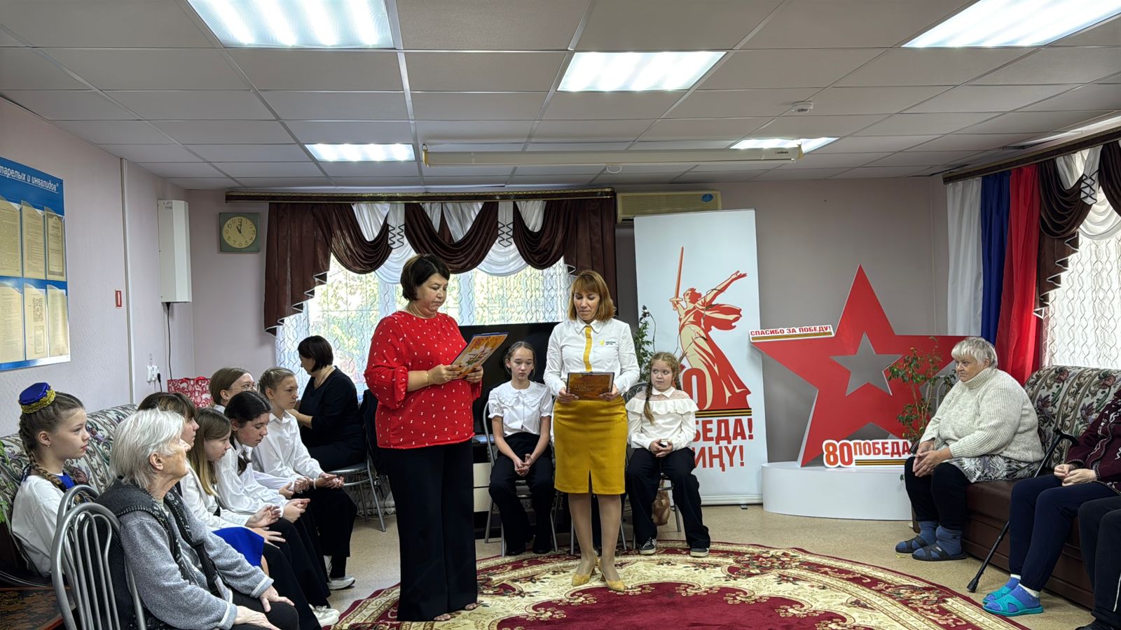 Бәйрәм алдыннан Тәтеш шәһәре А.А. Соколовский исемендәге 2 нче урта гомуми белем бирү мәктәбе укучылары тәрбия эше штабы җитәкчелегендә Олы Шәмәк авылында өлкәннәр һәм инвалидлар интернат-йортында булдылар. Талантлы балаларыбыз интернатта яшәүчеләрдә чын күңелдән елмаю һәм шатлык уяткан музыкаль номерлар, шигырьләр әзерләделәр. Без ярдәмгә мохтаҗларга гади игътибар һәм кайгыртуның никадәр зур әһәмияткә ия булуын күрдек.