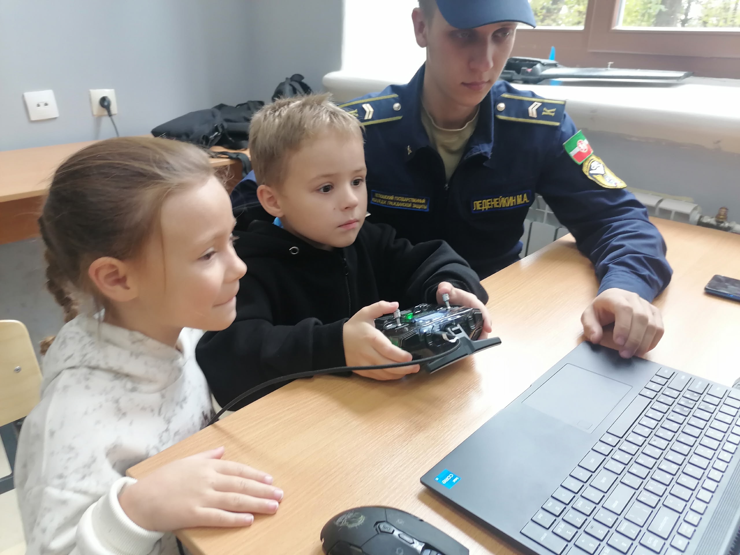 Ә «Кызыксынучаннар»- мәктәпкә әзерлек төркемендә тәрбияләнүче балалар гражданнарны яклау көллиятендә булдылар. Анда балаларга көллият укытучысы Кострина Елена Николай кызы һәм 311 төркем курсантлары белән бергә пилотсыз очкычлар дөньясына мавыктыргыч сәяхәт уздырдылар. Балалар БПЛАның башка өлкәләрдә дә киң кулланылануы: авыл хуҗалыгында, коткару эшләрендә, фәнни – тикшеренү максатларында һ.б. шулай ук күп кенә модельләрне үз күзләре белән күрә, аларның очышларын күзәтә, нинди дронның нинди максатларда кулланылуын белә алдылар. Курсантлар җитәкчелегендә балалар үзләрен оператор ролендә сынап карый алдылар. Очрашу балаларның күзләрендә кызыксыну һәм чын соклану хисләре уятты, ә белем багажы яңа материал белән тулыланды.
