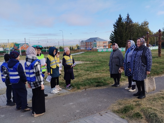 Пенсионерлар белән очрашулар барышында укучылар тәүлекнең караңгы вакытында күренеп торуның мөһимлеген искәрттеләр. Алар ассызыклаганча, ачык кием һәм анда яктылыкны кире кайтара торган элементлар – ул мода аксессуары гына түгел, ә тормыш өчен кирәкле чара. Алар ярдәмендә машина йөртүчеләр җәяүлене вакытында күреп ала һәм фаҗигале нәтиҗәләрдән котыла ала. Яшь инспекторлар шулай ук өлкән яшьтәге кешеләргә юлны кичкәндә аеруча игътибарлы булырга һәм үзләрен ышанычлы һәм куркынычсыз хис итәр өчен уңайлы хәрәкәт темпын сайларга киңәш иттеләр. Очрашу азагында балалар барлык катнашучыларга да файдалы мәгълүмат белән истәлекле буклетлар тапшырдылар.