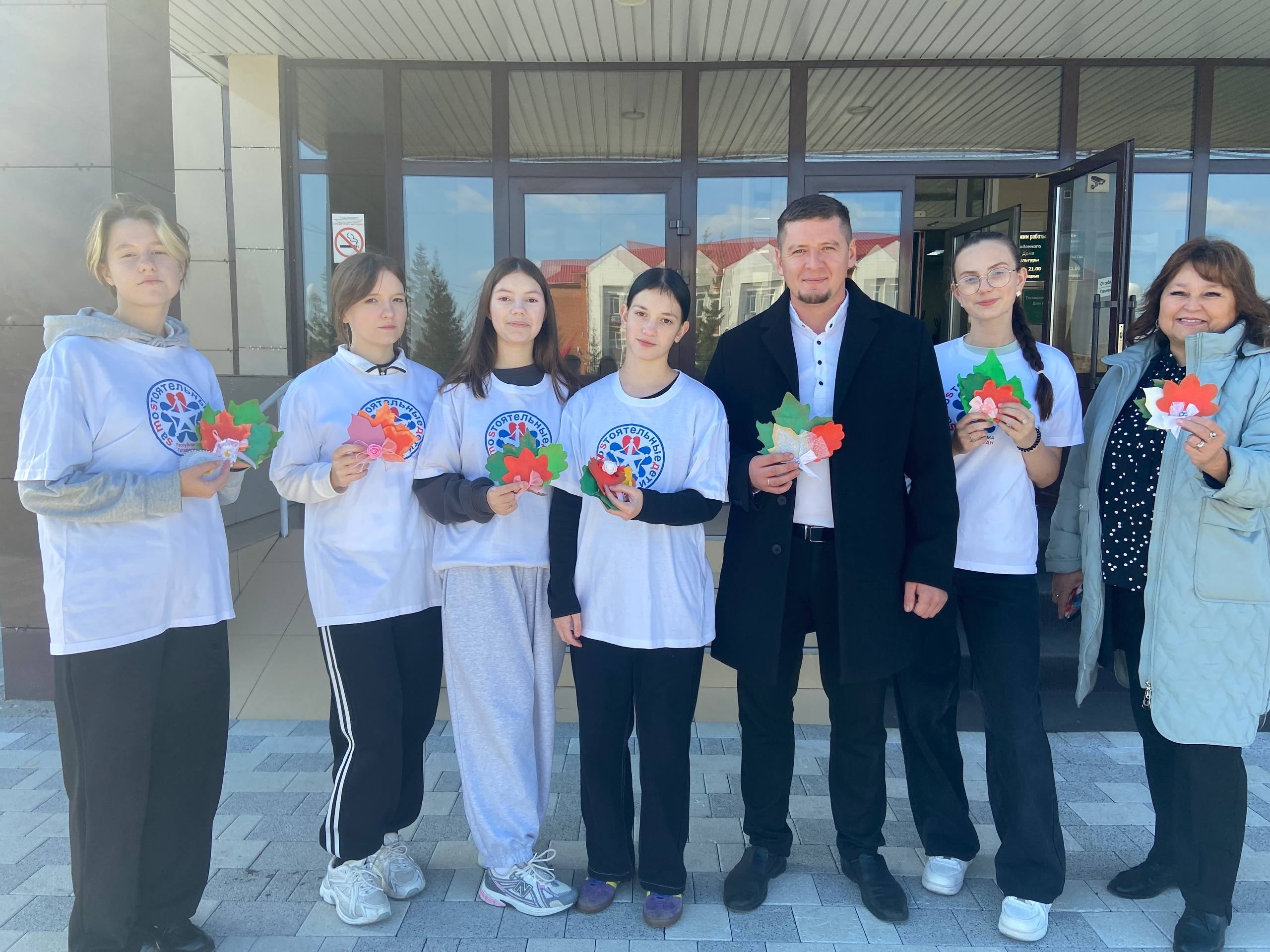 Укучыларук үз куллары белән «Көзге чәчәк бәйләмнәре» әзерләделәр һәм, педагогларны һөнәри бәйрәмнәре белән котлап һәм аларга сәламәтлек теләп, бүләкләрен бәйрәм концерты алдыннан район мәдәният йорты мәйданында укытучыларга тараттылар.