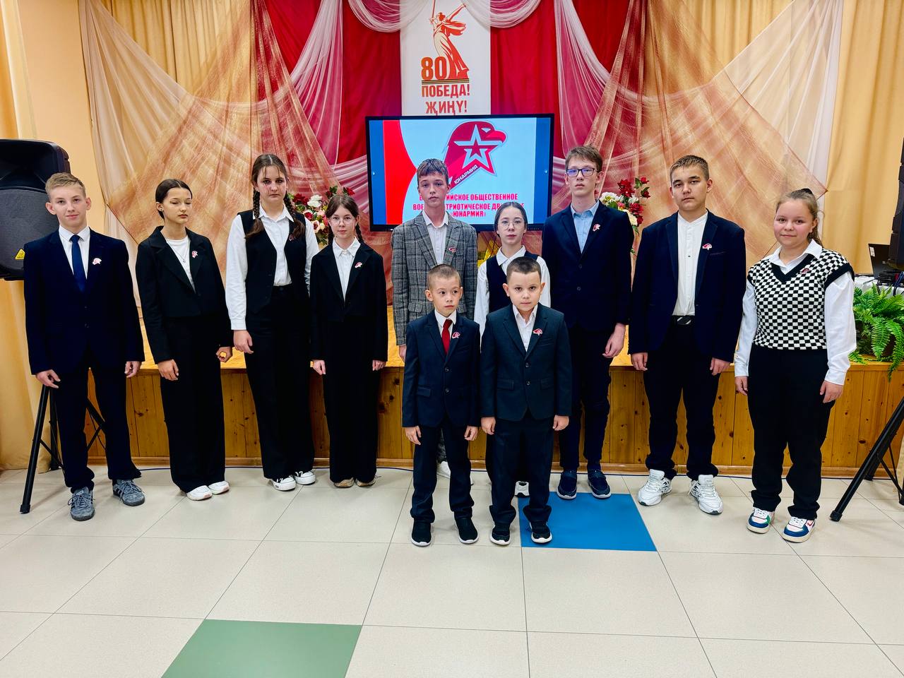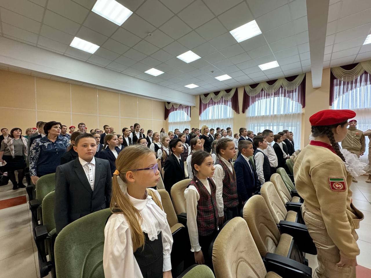 Тантаналы ачылыш Россия Федерациясе, Татарстан Республикасы дәүләте һәм «Яшь армия» байракларын чыгарудан башланды. Байракларны чыгару хокукы мәктәбебезнең «Алга, яшь армиячеләр! " хәрби-спорт уенының зона этабында җиңүчеләренә бирелде.