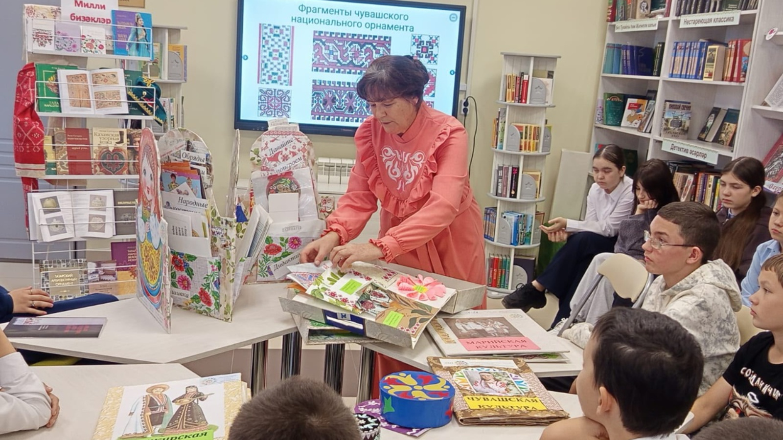 Чарага “Милли бизәкләр” дигән исем астында китап күргәзмәсе бизәлгән иде. Укучылар өйдә укыр өчен үзләренә китаплар сайладылар.