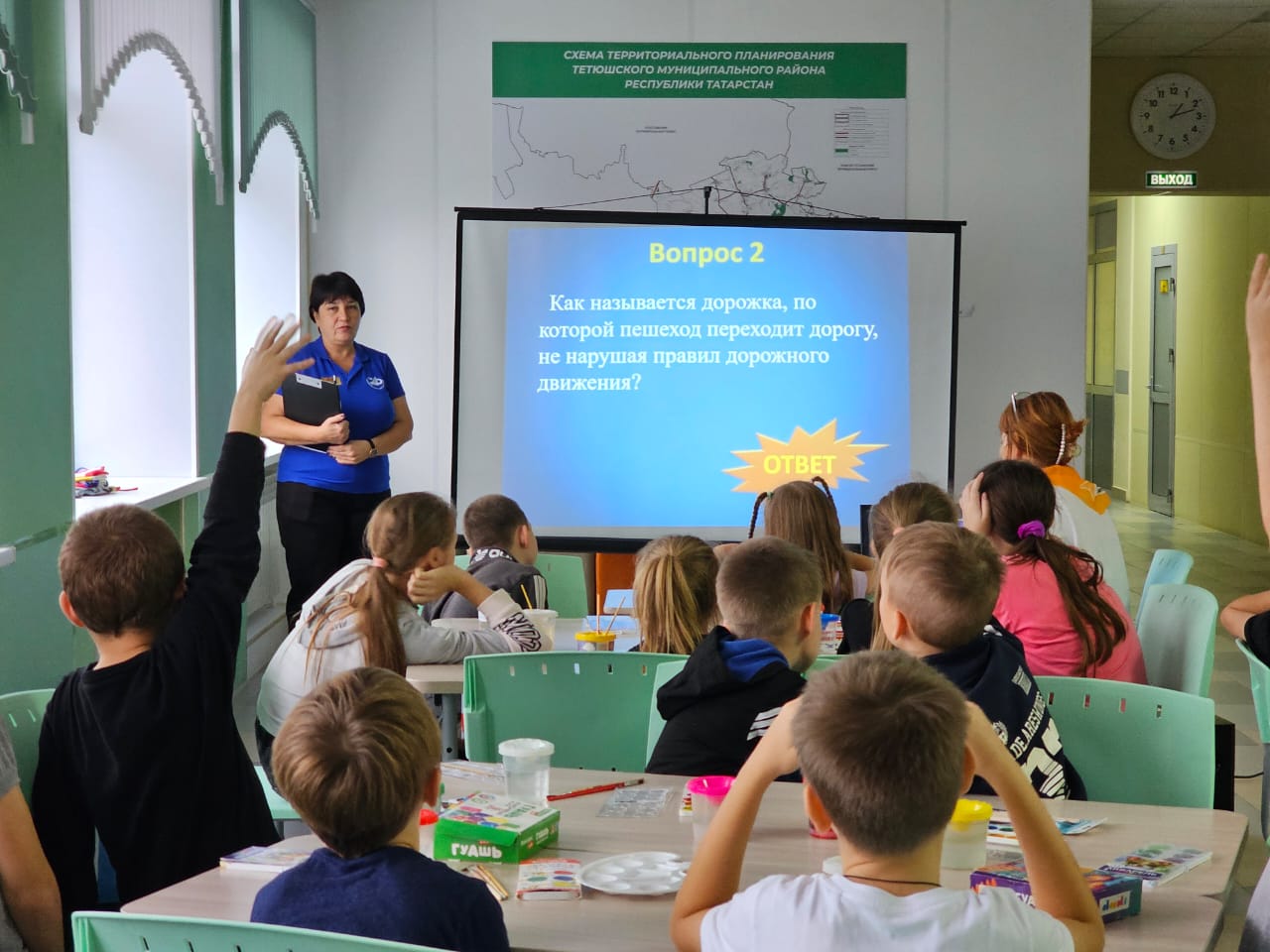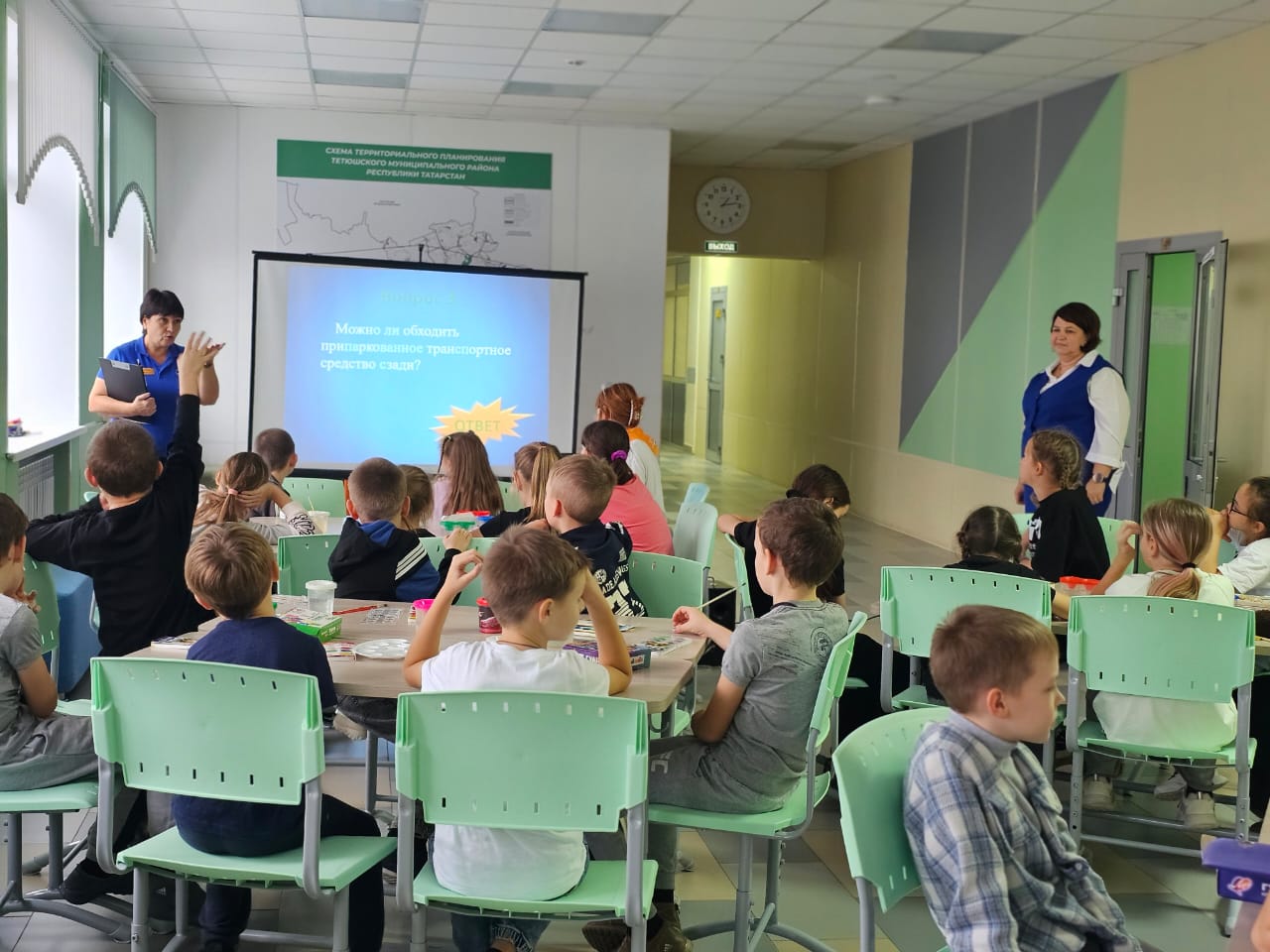 Балалар «Юл хәрәкәте кагыйдәләре» викторинасының мавыктыргыч уенда катнаштылар, анда юл хәрәкәте турындагы белемнәрен тикшерделәр.