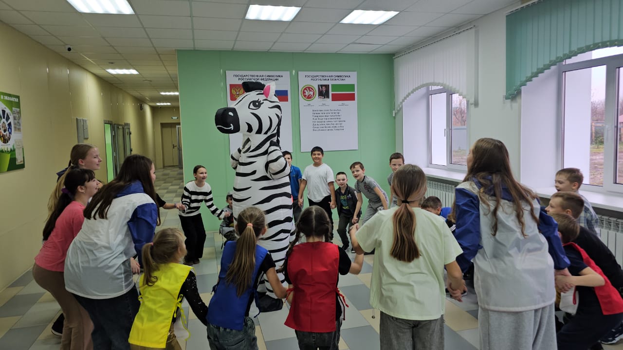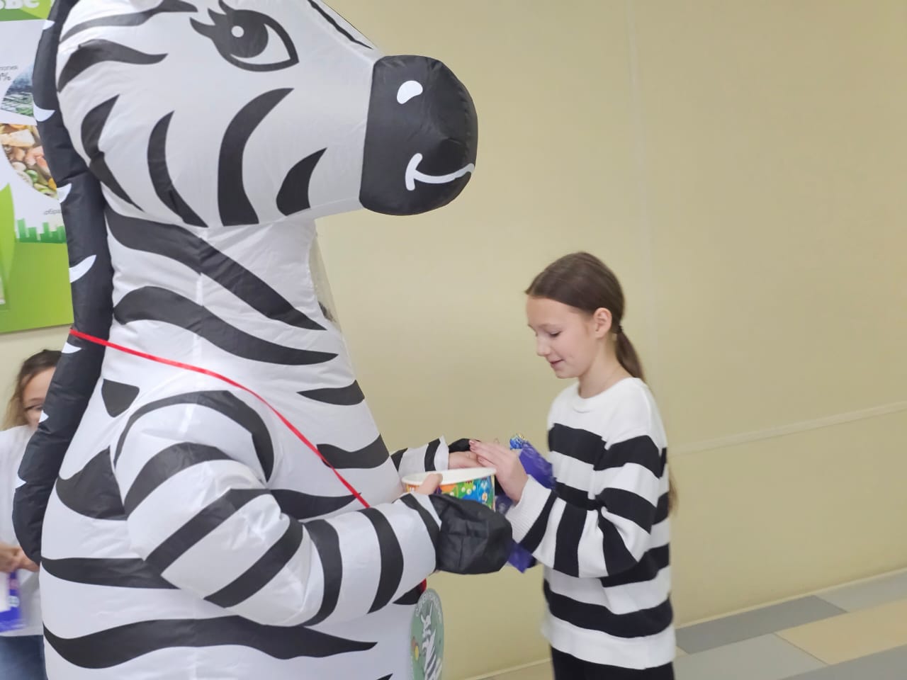 Бәйрәмдә зебраның пәйда булуы үзенчәлекле атмосфера тудырды. Балалар белән бергә ул традицион «Каравай»җырлады,тематик флешмоб биеде.