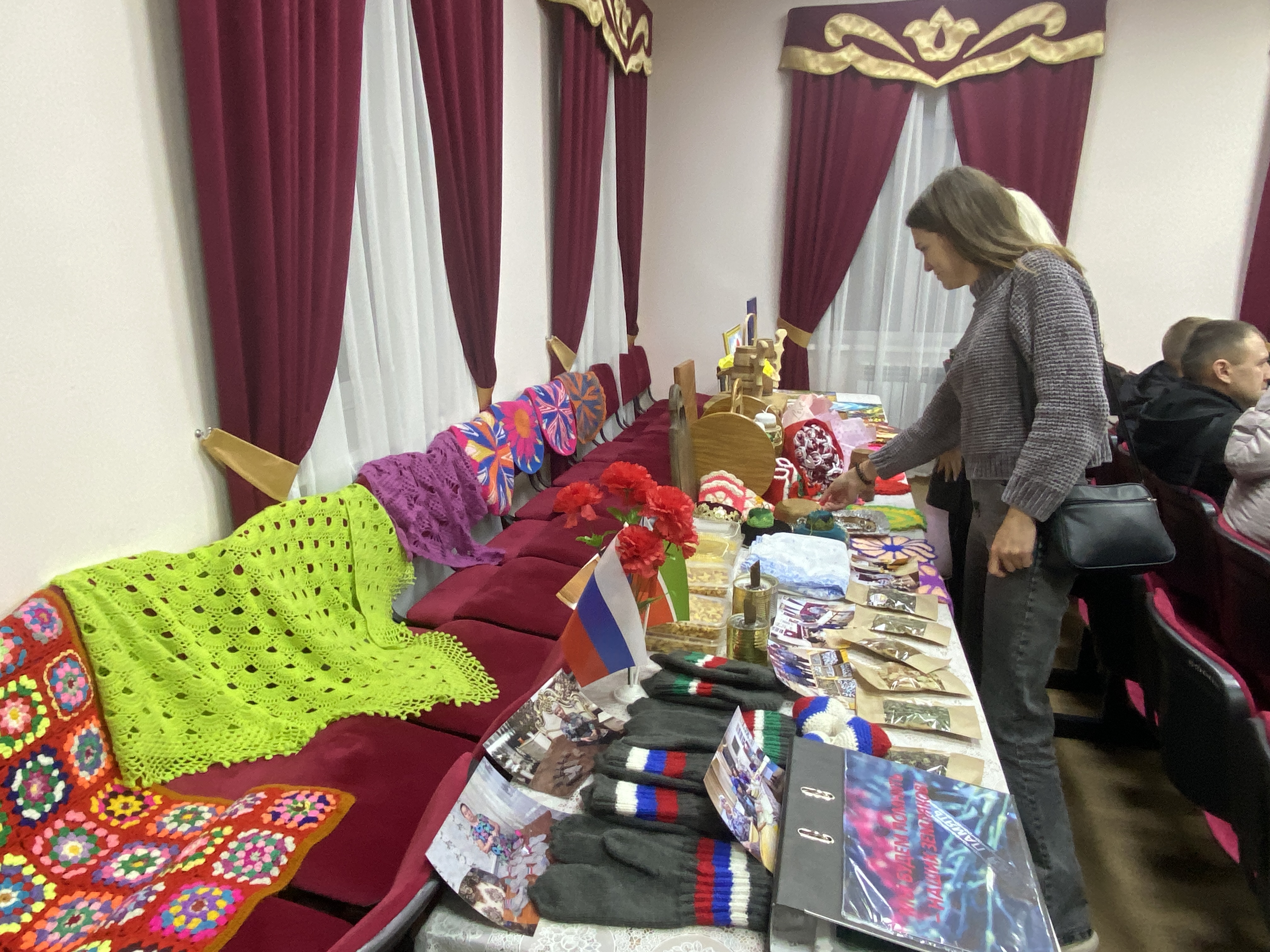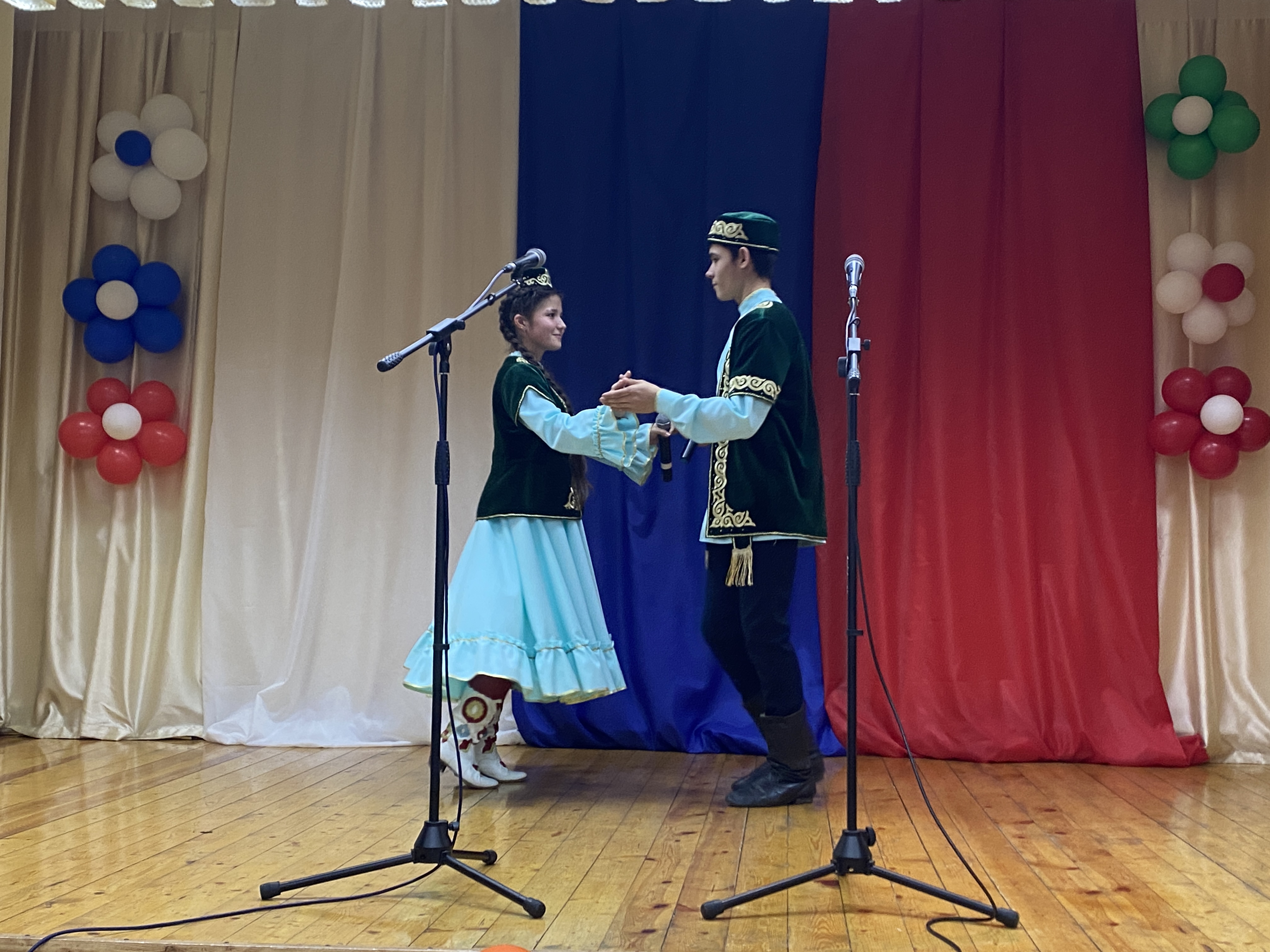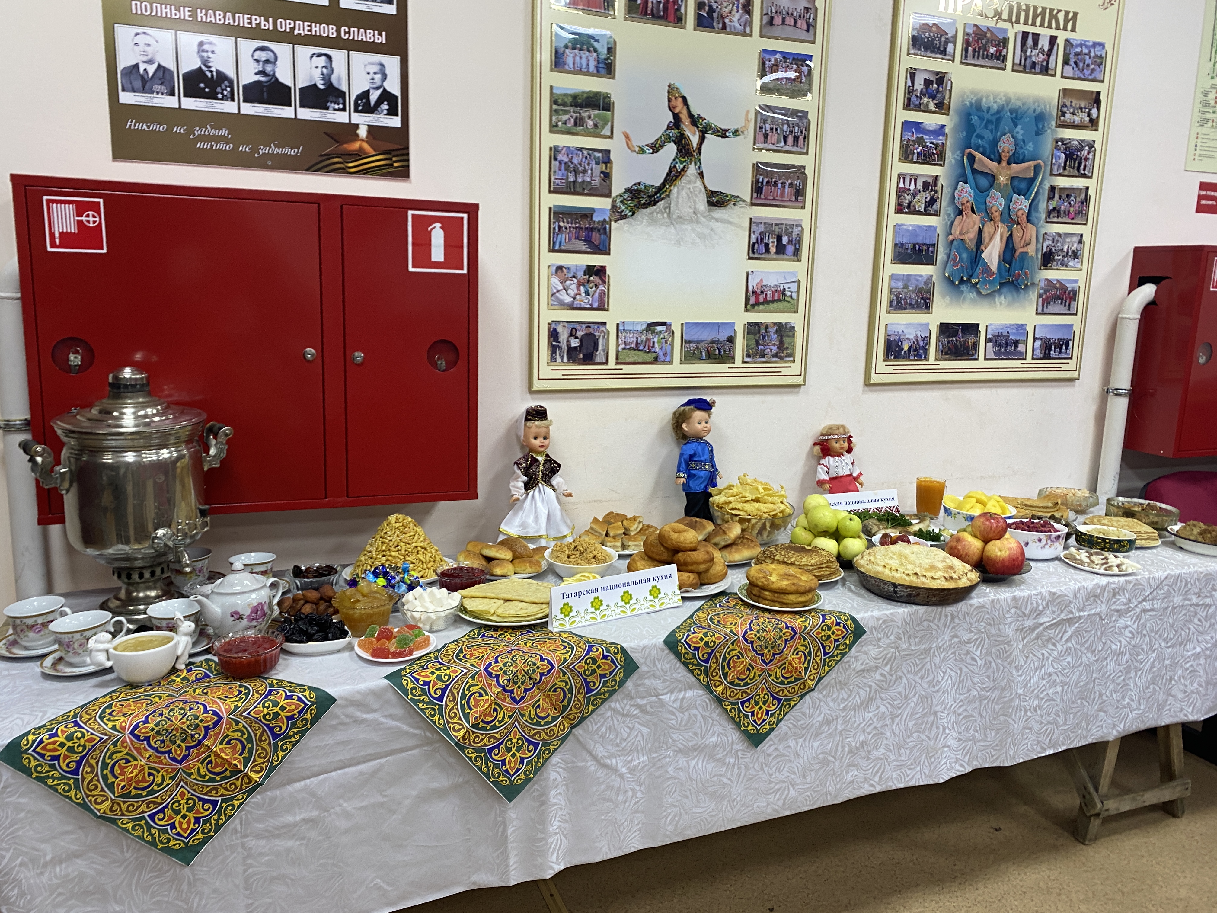 Тамаша залында патриотик күргәзмә һәм милли ризыкларны татып карау оештырылган иде.