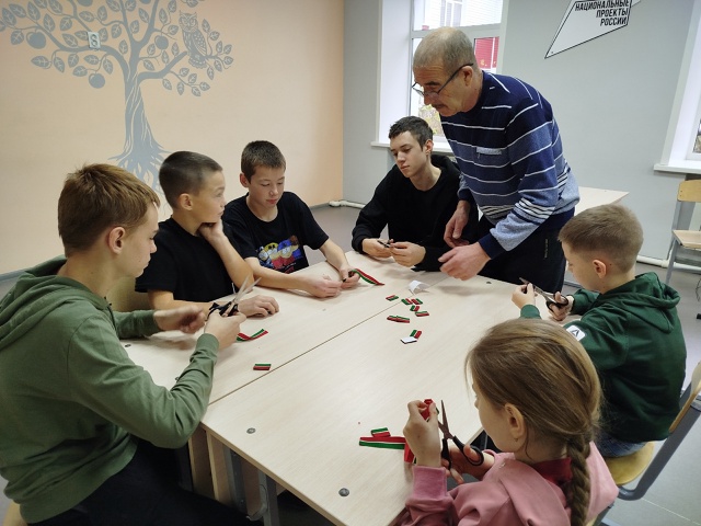 Тарих һәм җәмгыять белеме буенча практикумда узган чара кысаларында балалар катнашучыларга Татарстан флагы төсләрендәге тасмалар тапшырдылар. Яшь армиячеләр кунакларны якынлашып килүче бәйрәм белән котладылар, тыныч күк йөзе һәм уңышлар теләделәр. Акция республиканың төп законына һәм яшь буынның гражданлык активлыгына хөрмәт күрсәтүгә әверелде.