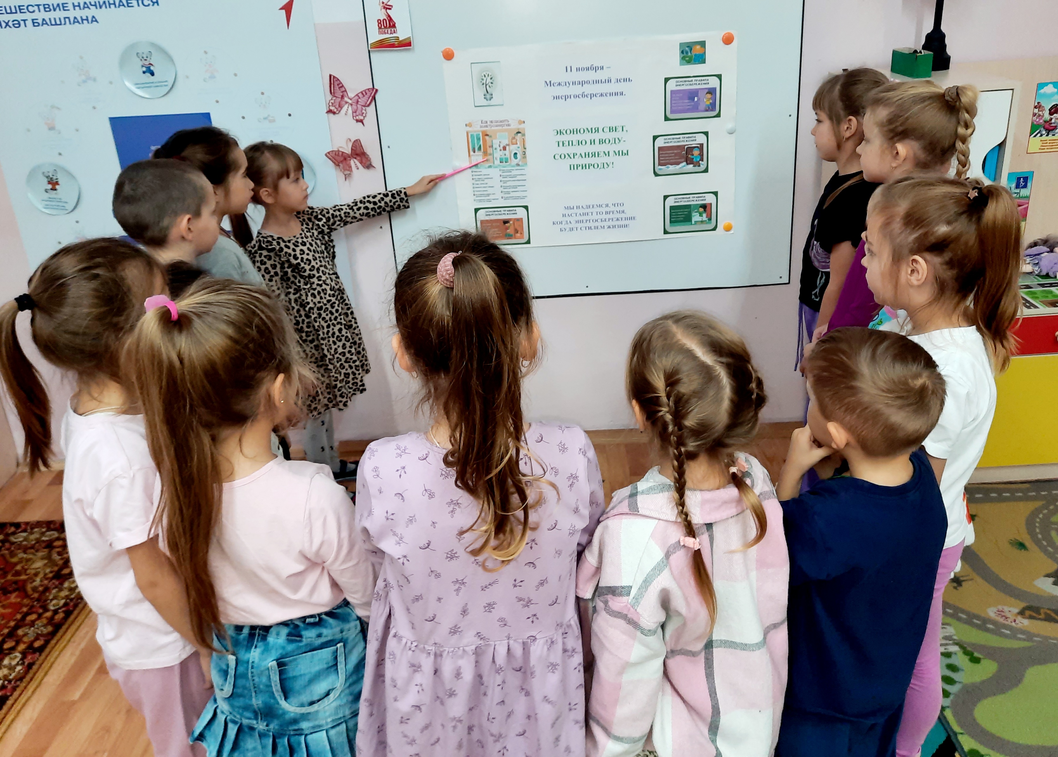 Бүген "Яшьләр һәм балалар" милли проектын һәм "Балаларга иң яхшысы" ярдәмче проектын гамәлгә ашыру кысаларында "Сабый" балалар бакчасының өлкән-әзерлек төркемендә «Халыкара энергияне сак тоту көне» тематик дәресе узды.