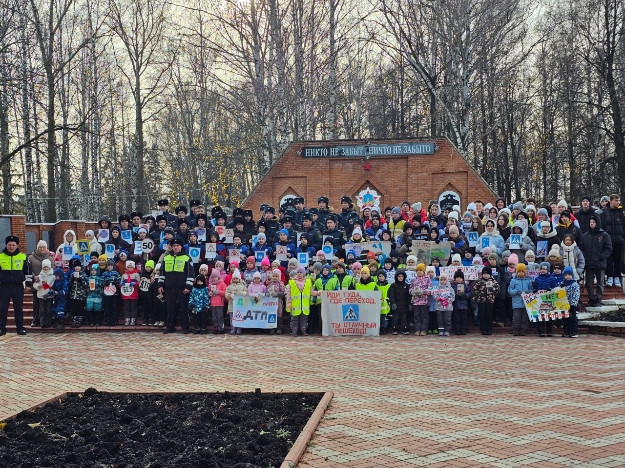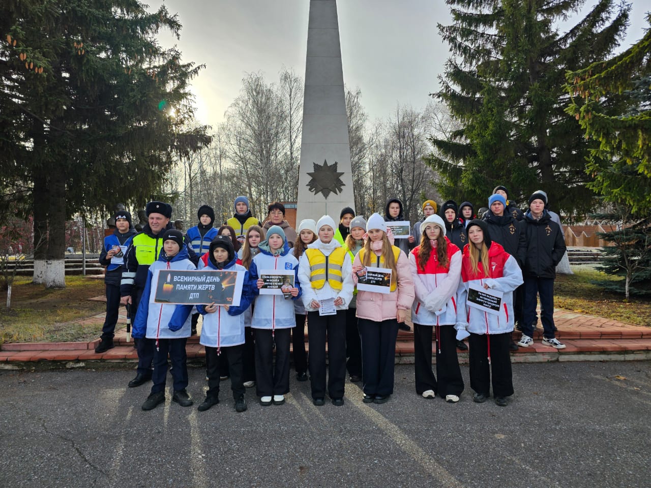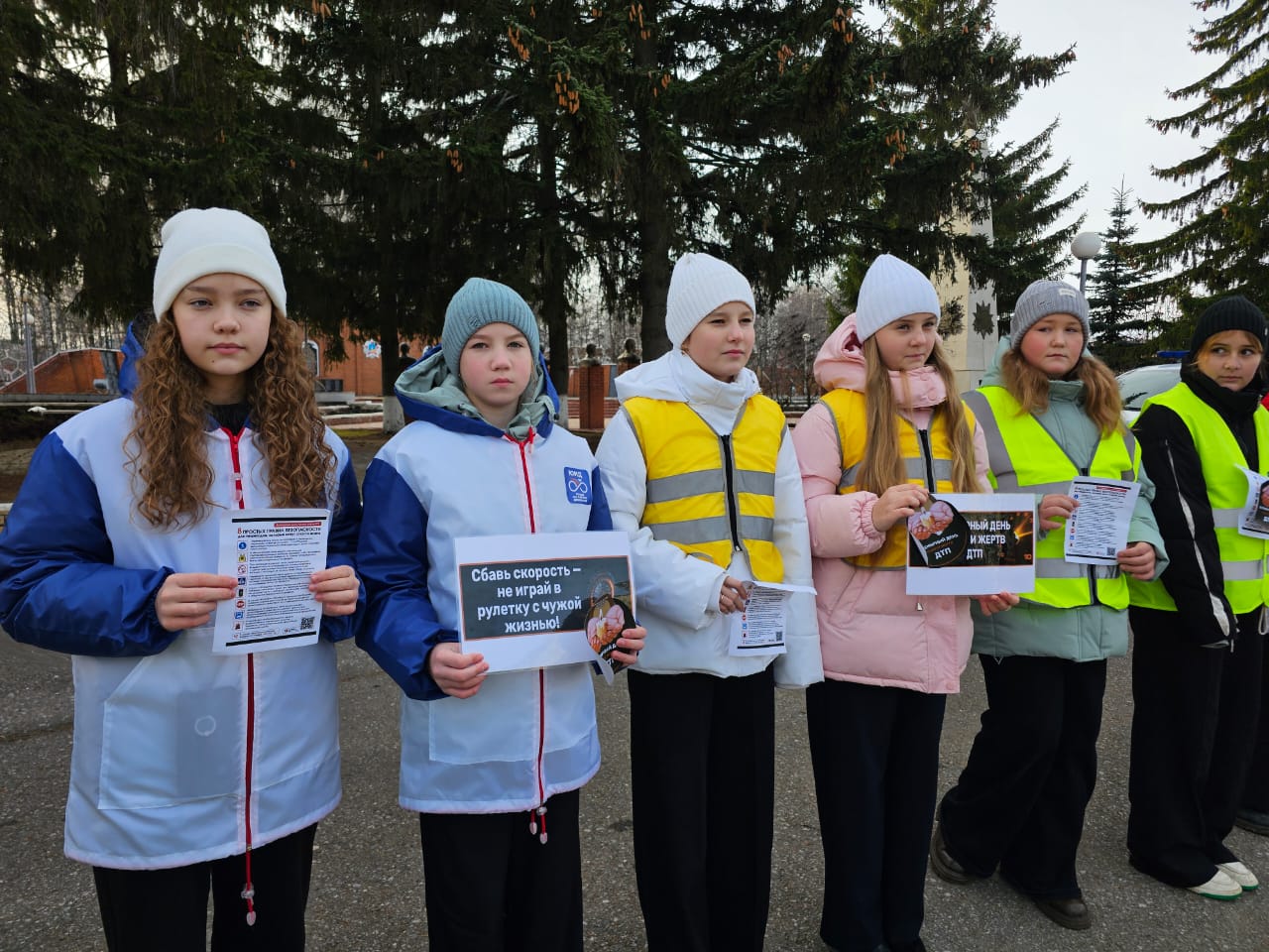 Акция кысаларында "Зебрики" ЮИД мәктәп отряды катнашучылары шәһәрлеләргә машина юлларын имин кичү кагыйдәләре язылган белешмәләр тапшырдылар. Моннан тыш, шәһәр халкы башлангыч сыйныф укучылары тарафыннан юл-транспорт һәлакәтендә һәлак булганнарны искә алу көненә махсус ясалган истәлекле эшләнмәләр таратты. Иҗади эшләр «Зебрика» ЮИД отряды җитәкчесе Е. П. Емельянова, тәрбия буенча директор киңәшчесе Г. Н. Саматова һәм педагог‑оештыручы Е.В. Дмитриева җитәкчелегендә әзерләнде.