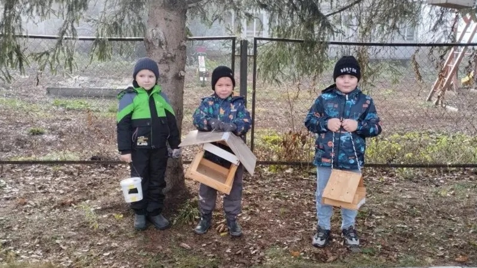 Балалар әти-әниләре белән бергә кошлар өчен җимлекләр ясадылар. Аннары укытучы И.В. Морозкина аларга җимлекләрне мәктәп территориясенә урнаштырырга һәм аларны тәм-томнар белән тутырырга булышты.