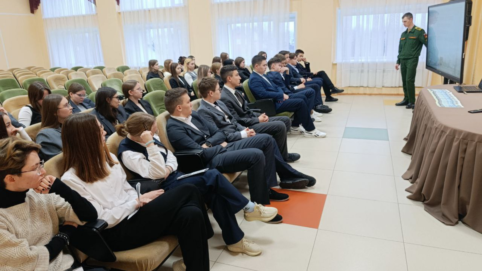 14 ноябрьдә Михайловский хәрби-артиллерия академиясе курсанты Л.Таранов бу уку йортында белем алуның мөмкинлекләре һәм өстенлекләре турында укучылар белән уртаклашу өчен Ханжин П.С. исемендәге Тәтеш 1 нче урта гомуми белем бирү мәктәбендә булды.Бу очрашу өлкән сыйныф укучыларына хәрби академиядәге тормыш турында җентекләп белергә, һөнәри әзерлек буенча фикер алышырга һәм булачак офицерга үзләрен кызыксындырган сораулар бирергә мөмкинлек тудырды. Курсант үзенең тәҗрибәсе турында сөйләде, тәэсирләре белән уртаклашты һәм укучыларның сорауларына җавап бирде, аларга хәрби-артиллерия академиясендә уку перспективалары турында ачыграк күзаллау алырга ярдәм итте. Укучылар мөһим сораулар бирделәр, хәрби академиягә керү өчен алшартлар, мөмкинлекләр һәм таләпләр турында белделәр, шулай ук булачак һөнәр сайлау өчен илһам һәм мотивация заряды алдылар. Хәзер инде кучылар үзләренең киләчәкләре турында аңлы карар кабул итә алалар.