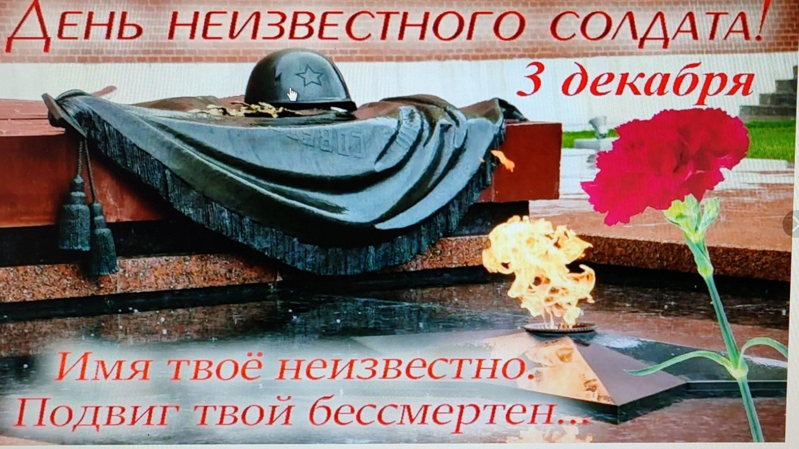 3 декабрь 10.00 сәгатьтә Тәтеш шәһәрендә Дан Һәйкәле янында Билгесез солдат көненә багышланган «Хәтергә билгесез кергәннәргә...» тантаналы митингы булачак.