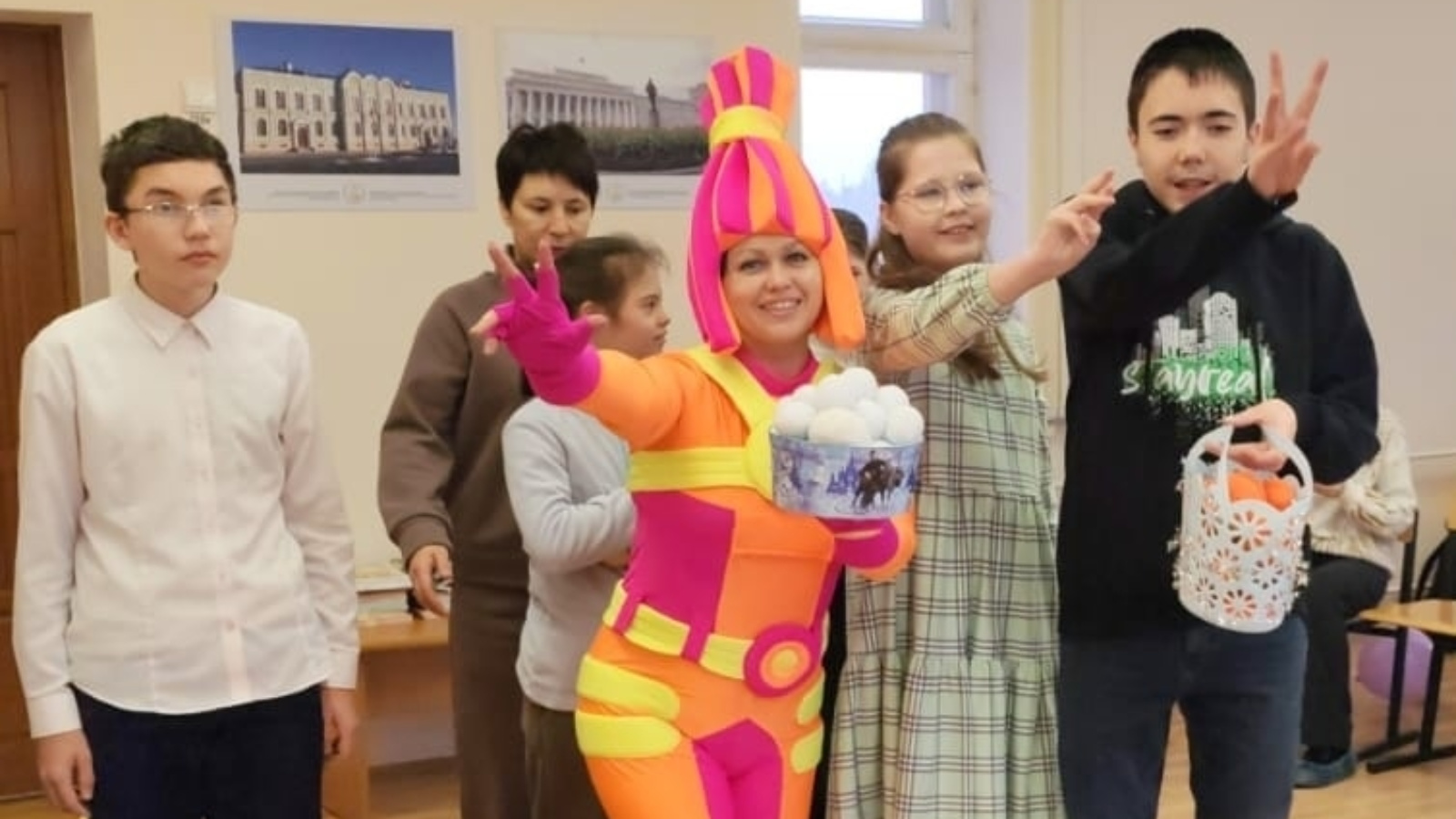 Хәйрия акциясе кысаларында безнең кечкенә дусларыбыз «Фиксики» мультфильмының яраткан герое белән таныша алдылар. Бу вакыйга балалар өчен якты һәм шатлыклы мизгел булды, чөнки мондый персонаж белән очрашу балаларга елмаюлар һәм яхшы кәеф бүләк итте. Визит вакытында балалар тере персонажны күреп кенә калмадылар, аның белән бергә уйнадылар, мавыктыргыч конкурсларда һәм викториналарда катнаштылар.