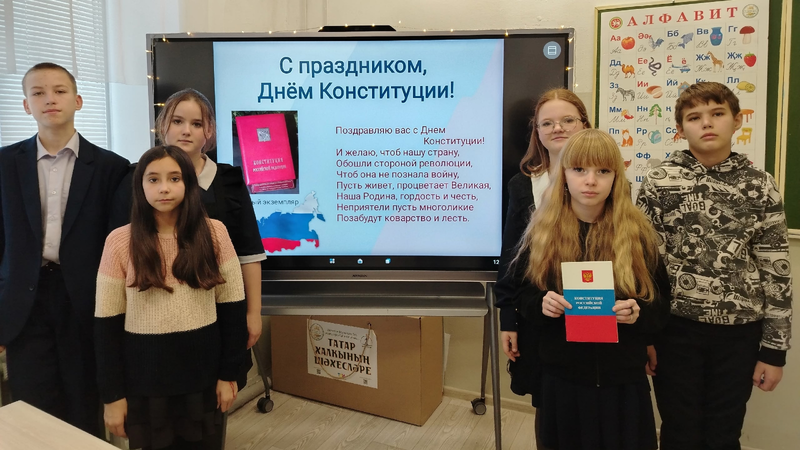 Нармонка мәктәбенең 6 нчы сыйныф укучылары өчен танып белү сыйныф сәгате — Конституция көне һәм аның тарихы турында әңгәмә үткәрелде.