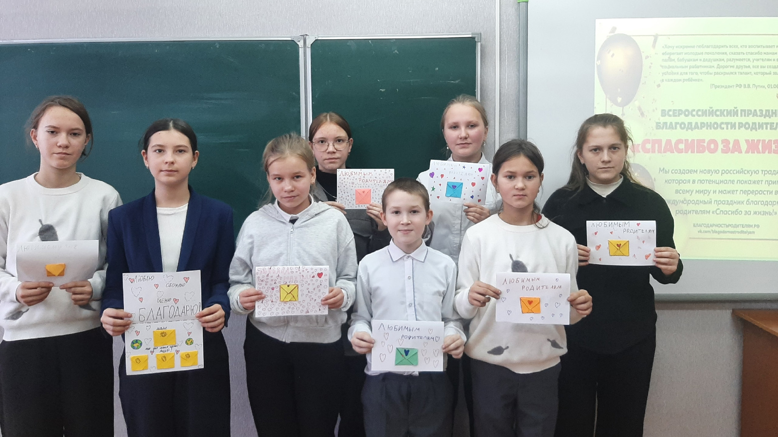 Мәктәп укучылары белән "Гомеребез өчен рәхмәт" акциясе үткәрелде, балалар әти - әниләренә рәхмәт открыткалары ясадылар.