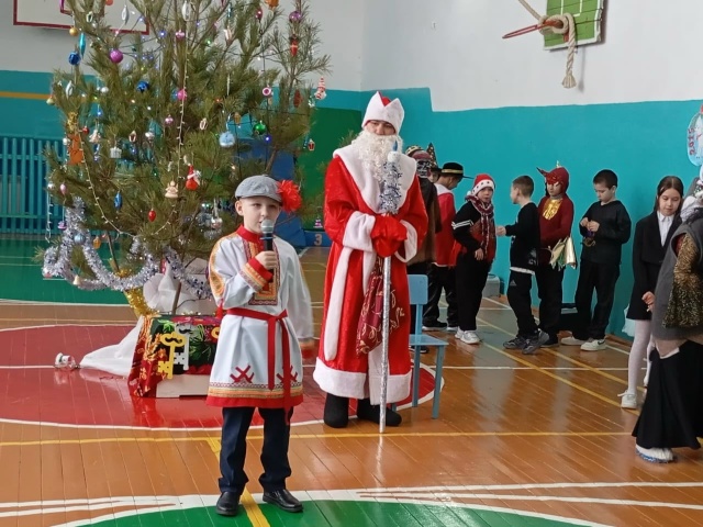 Мәктәп директоры Л.П. Малькина балаларны якынлашып килүче бәйрәмнәр белән котлады һәм мәктәп һәм район конкурсларында актив катнашканнары өчен грамоталар тапшырды. Бәйрәм азагында укучылар Тәтеш муниципаль районы Башлыгы Сафиуллов Рәмис Хатыйп улыннан Яңа ел бүләкләре алдылар.