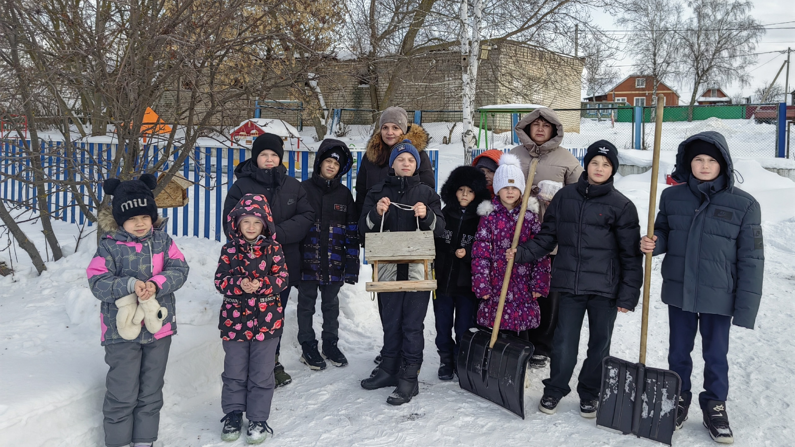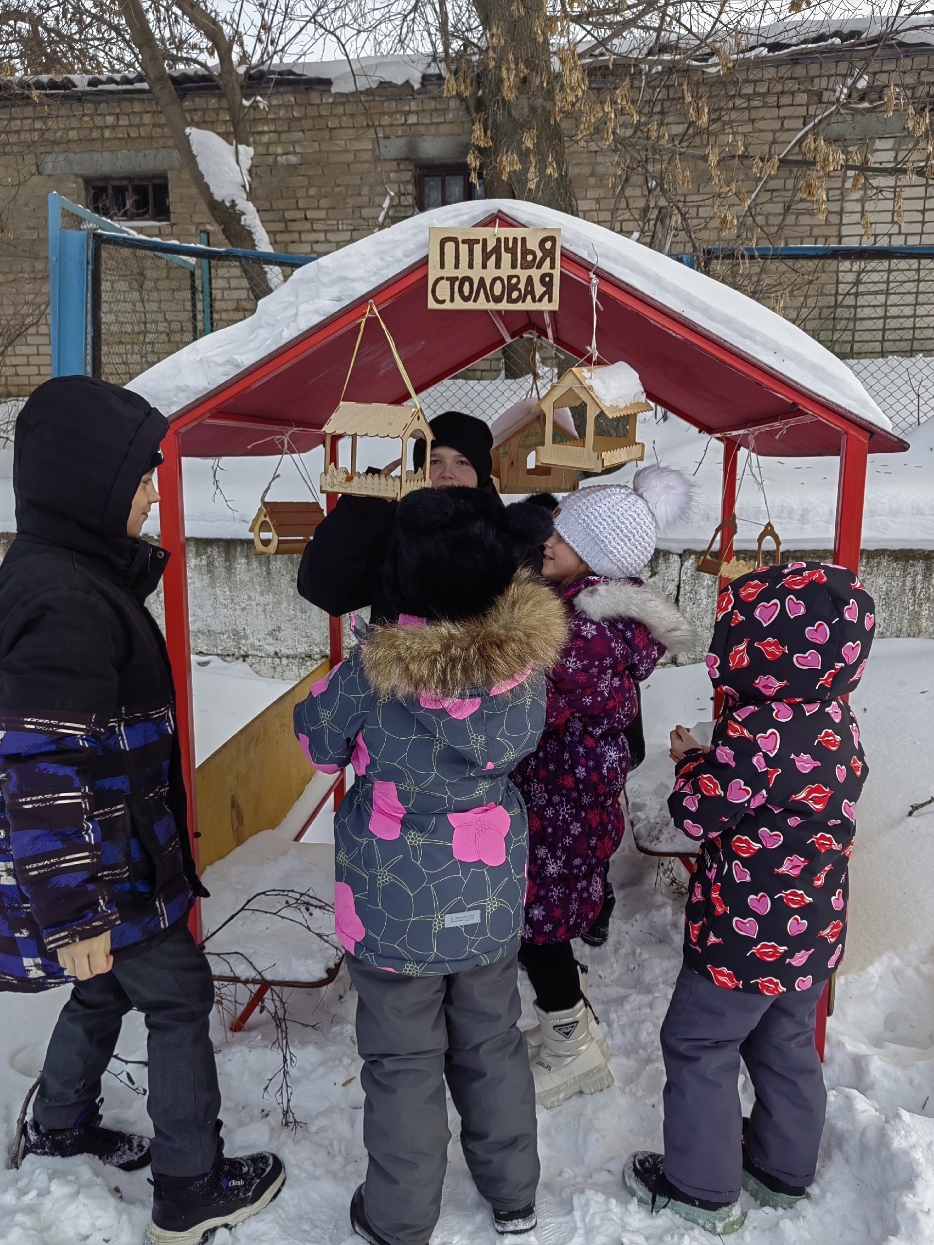 «Россия бөркете» программасында катнашучылар һәм бишенче сыйныф укучылары Преснова Г.Г. һәм тәрбия буенча директор киңәшчесе Игнатьева А.С. белән берлектә мәктәп ишегалдында җимлекләр элеп куйдылар. Шуннан соң балалар аларга кошлар өчен сый салдылар.
