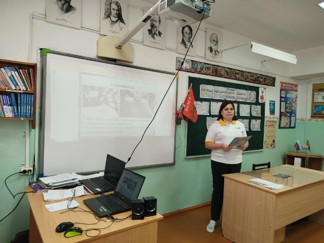 Тарих укытучысы Л.и. Кириллова балаларга тарихи фактлар белән таныштырды, ул еллардагы вакыйгаларның хронологиясе һәм миллионлаган кеше үткән куркыныч сынаулар турында сөйләде.