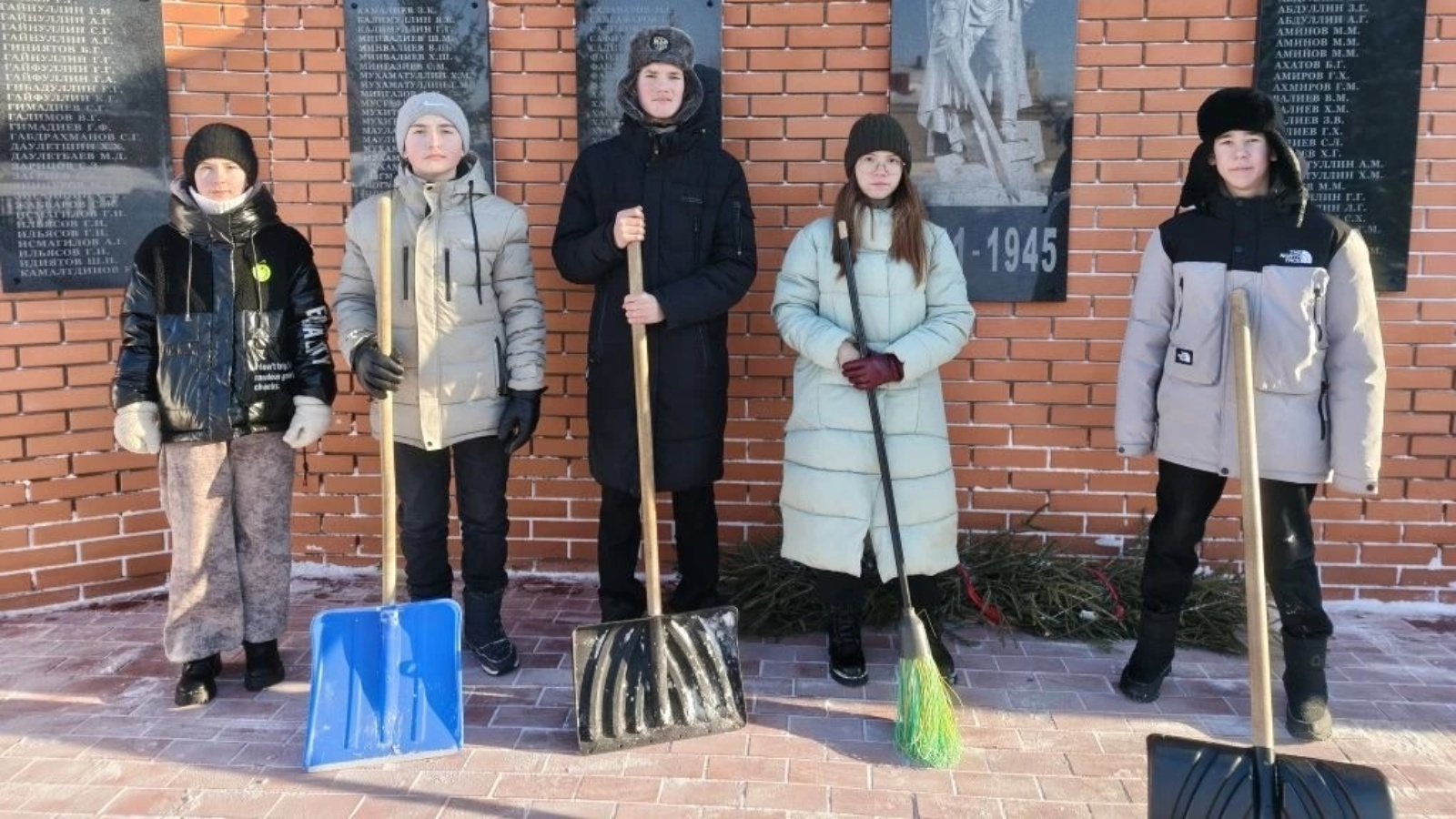 Патриотлык айлыгы кысаларында ЮИД мәктәбе укучылары "Обелиск" операциясен оештырдылар - һәйкәл территориясен кардан чистарттылар
