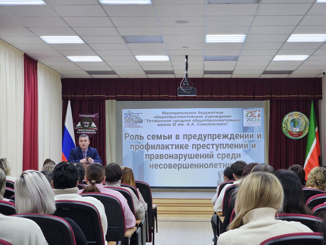 Тәтеш шәһәре А.А. Соколовский исемендәге 2 нче урта гомуми белем бирү мәктәбе Сәламләү сүзе белән мәктәп директоры Ф. ф. Гаффаров чыгыш ясады, нәкъ менә гаилә шәхес нигезләрен сала ала һәм борчулы сигналларны вакытында күрә ала дип искәртте.