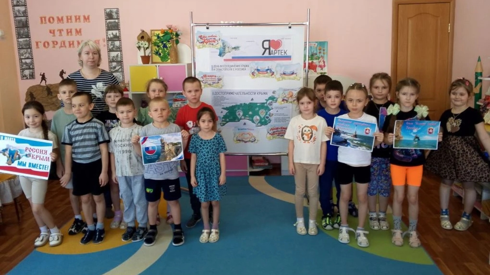 18 мартта без мөһим көнне билгеләп үтәбез — Кырымның Россия белән кушылуы. «Рябинушка» балалар бакчасында әзерлек төркемендә әлеге вакыйгага багышланган «Кырым — Россиянең бер өлеше» мәгълүмати минуты узды. Тәрбияләнүчеләр Кырым буенча виртуаль сәяхәткә киттеләр. Алар аның табигате, истәлекле урыннары һәм бай тарихы белән танышканнар. Балалар Кырымның матур урын гына түгел, ә безнең зур һәм яраткан Россиянең бер өлеше булган чын энҗе икәнен белделәр.