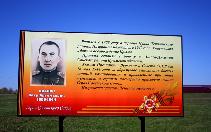 Чолы авылында Советлар Союзы Герое Иванов Петр Артемьевичның исемен мәңгеләштерү максатыннан язулы билгеләмә ачылышы тантанасы булды.