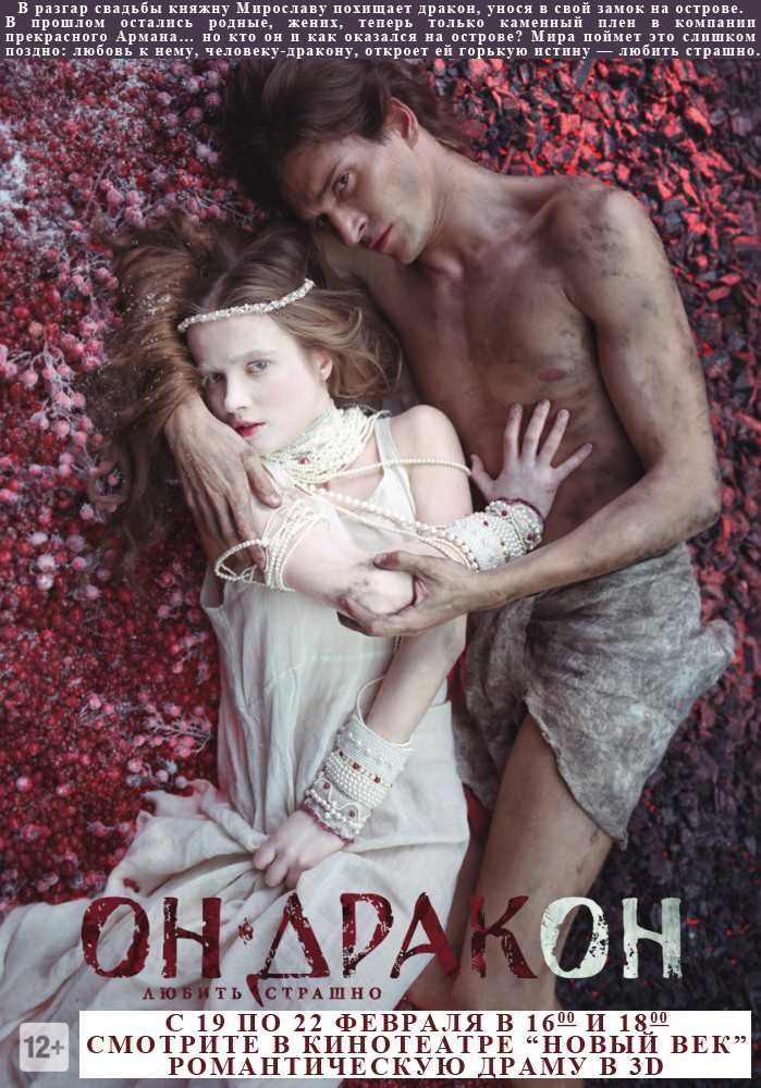 19 - 22 февраль көннәрендә «Он дракон» дип исемләнгән романтик драма күрсәтеләчәк. Сеанслар сәгать 16.00 тә һәм 18.00 да. Бәясе 100 сум.