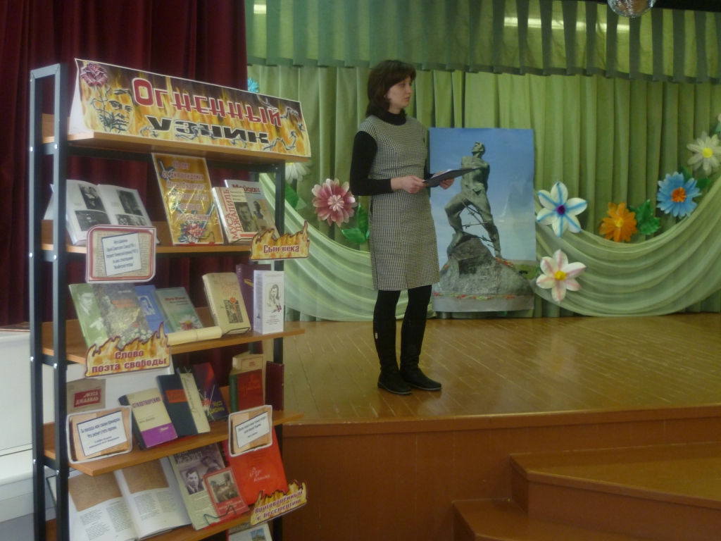 М. Җәлилнең әдәби мирасы күп милләтле совет әдәбиятының кыйммәтле бер казанышы булып тора. Аның әсәрләре кешеләрдә матур, гуманистик тойгылар уята, аларны тормыштагы матурлыкны күрергә һәм шул матурлык өчен көрәшергә чакыра. Безнең мәктәптә тел белгечләре Үзәк китапханә белән бергә татар халкының Бөек улы, герой шагыйрь Муса Җәлил (Муса Мостафа улы Җәлилов) Туган көненә багышланган бәйрәм әзерләделәр.
