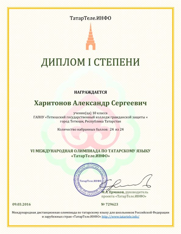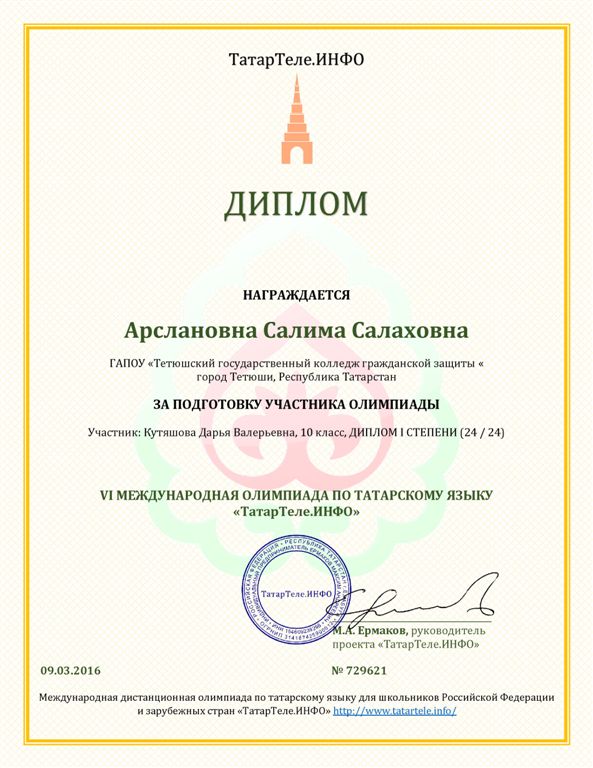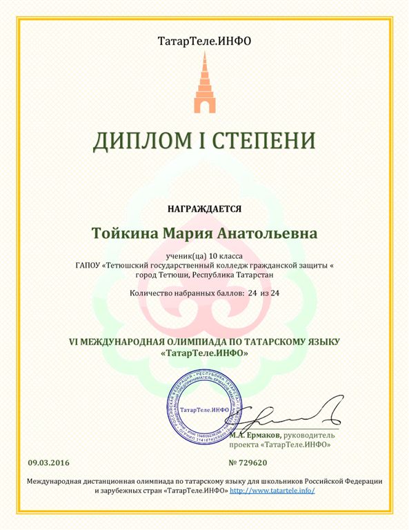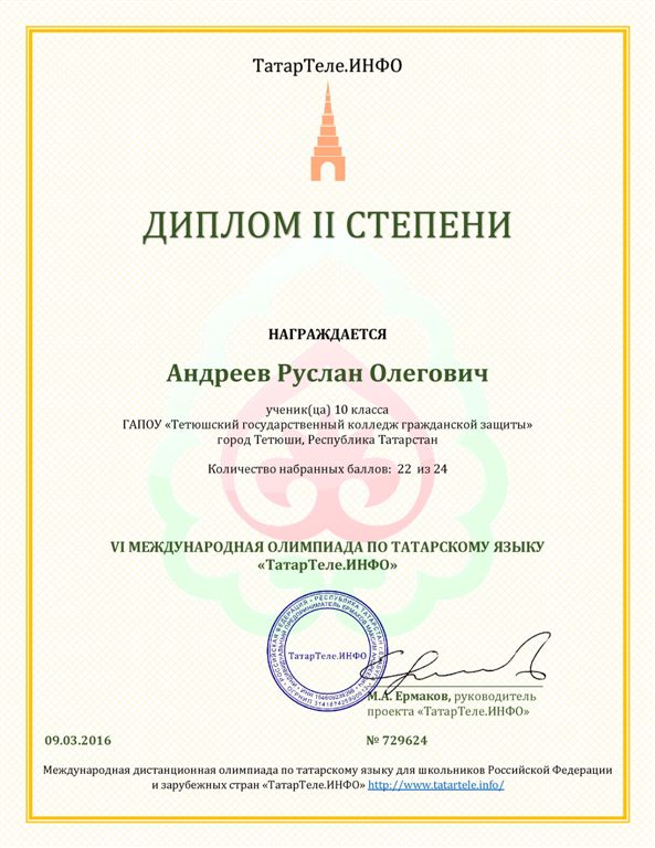 Тәтеш дәүләт гражданнарны яклау көллиятенең 1 курс студентлары татар теле буенча «ТатарТеле.ИНФО» олимпиадасында катнаштылар.