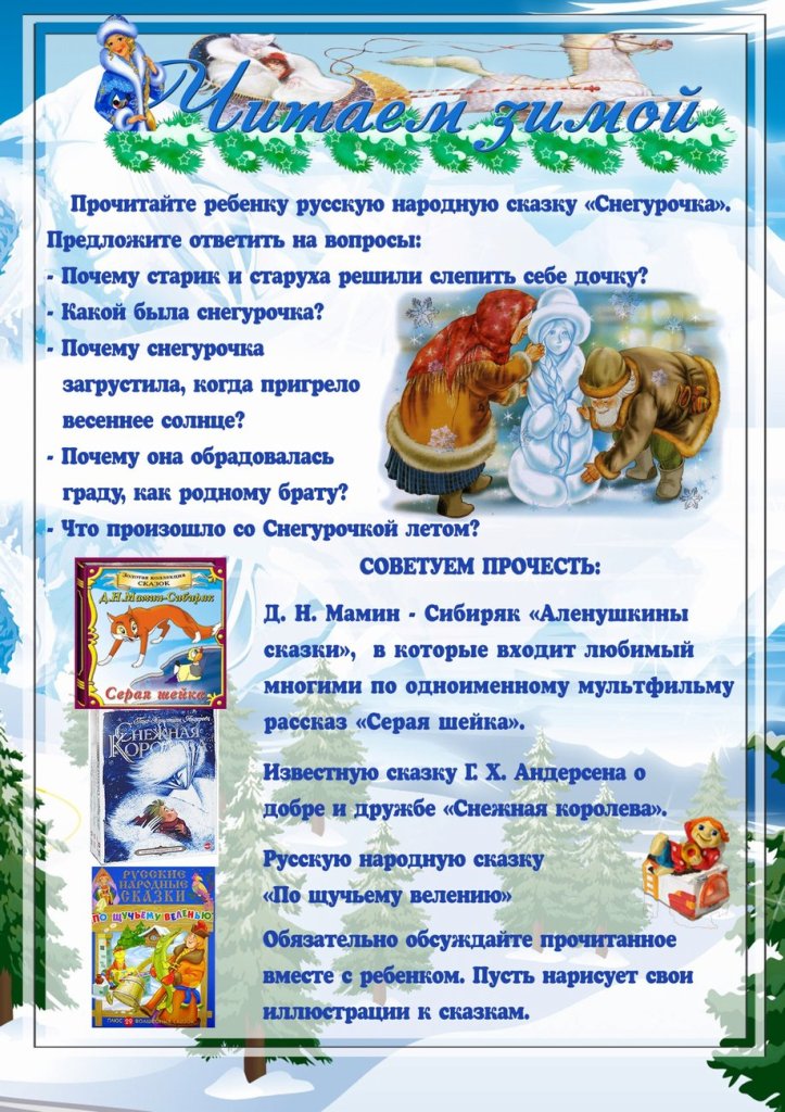 В конце мероприятия каждая книга нашла своего читателя. А для родителей библиотекарь составила рекомендательный список «Читаем зимой», который предлагаем вашему вниманию.