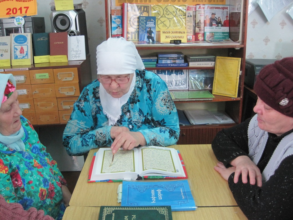9 марта культработники села Нижние Тарханы объединили любительские клубы «Изучаем арабский язык» и «Любители книг» в один большой коллектив. Теперь члены клубов изучают азы арабского языка и читают библиотечные книги на тему «История ислама».
