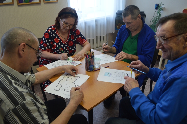 Сегодня участники занятия в клубе «Красота спасет мир» в качестве разминки раскрашивали рисунки котят, в ходе работы специалист применила технологию «терапия воспоминаниями», а по инициативе члена клуба Ирины Мубаракзяновой, в качестве подарка на день рождения, изготовили поделку «Цветы в кружке» в технике аппликация. Именинница Пирогова Раиса Николаевна была рада получить подарок, который несет в себе душевную теплоту дарящих.