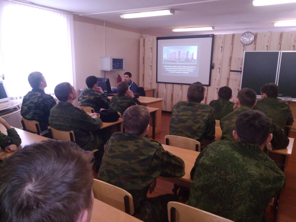 Преподаватели Казанского государственного энергетического университета провели профориентационную беседу с кадетами 10-11 классов. Кадеты получили подробную информацию об условиях приема в КГЭУ, правилах и сроках поступления, направлениях подготовки – институт теплоэнергетики, институт электроэнергетики и электроники, институт экономики и информационных технологий. Каждый кадет получил буклет о ФГБОУ ВО «Казанский государственный энергетический университет».