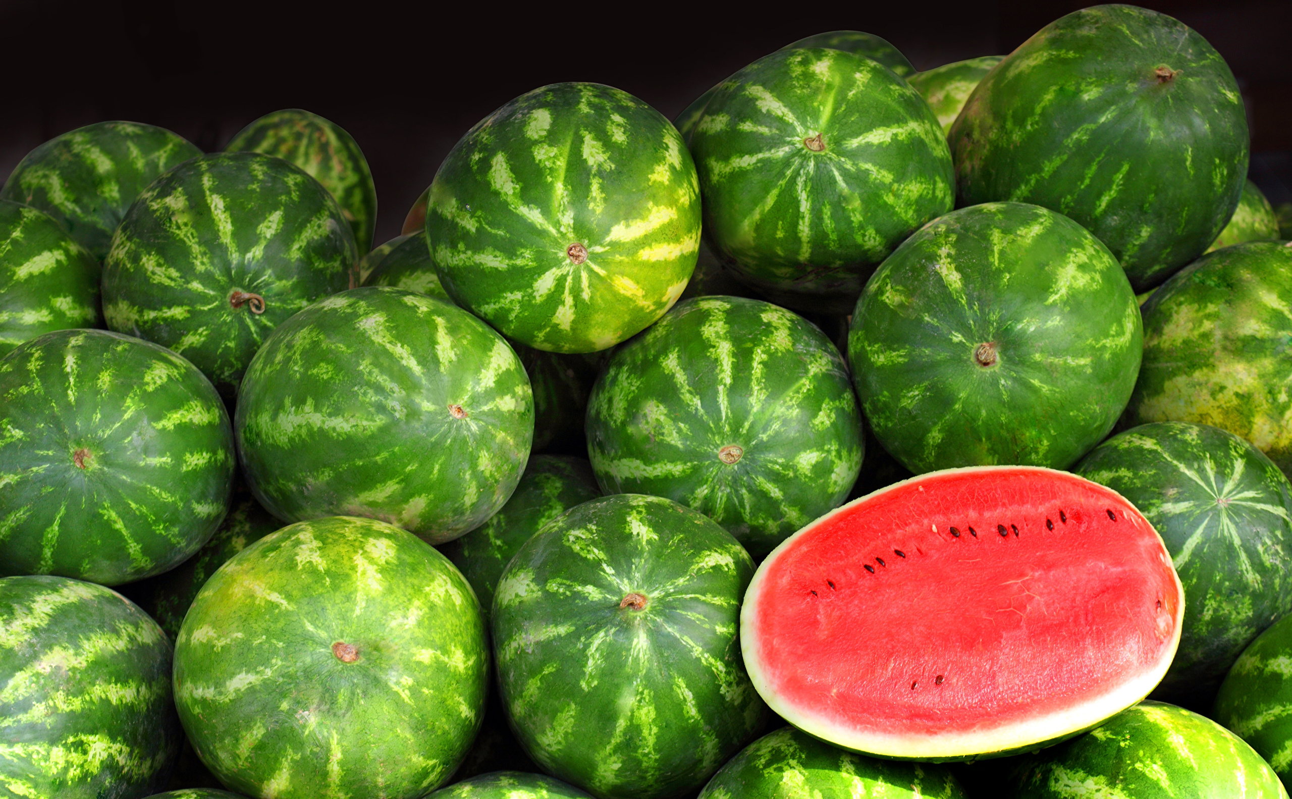 Выбираем арбуз. Хороший, зрелый, крупный арбуз имеет целостный покров, цвет корки яркий и контрастный, светлое пятно на боку, которое отлежал арбуз, должно быть максимально желтым, даже оранжевым. Спелый арбуз обязательно покрыт твердой блестящей коркой, если ноготь легко протыкает арбузную кожу - значит, арбуз незрелый. Усик и плодоножка у зрелого арбуза сухие. При ударе ладонью зрелый арбуз вибрирует, при ударе согнутым пальцем издаёт умеренно звонкий звук, при сжатии вдоль продольной оси - слабый хруст. Мякоть красная различных оттенков, семена вызревшие, чёрного или коричневого цвета. Консистенция мякоти плодов сочная, нежная, без ослизнений, сладкая на вкус.